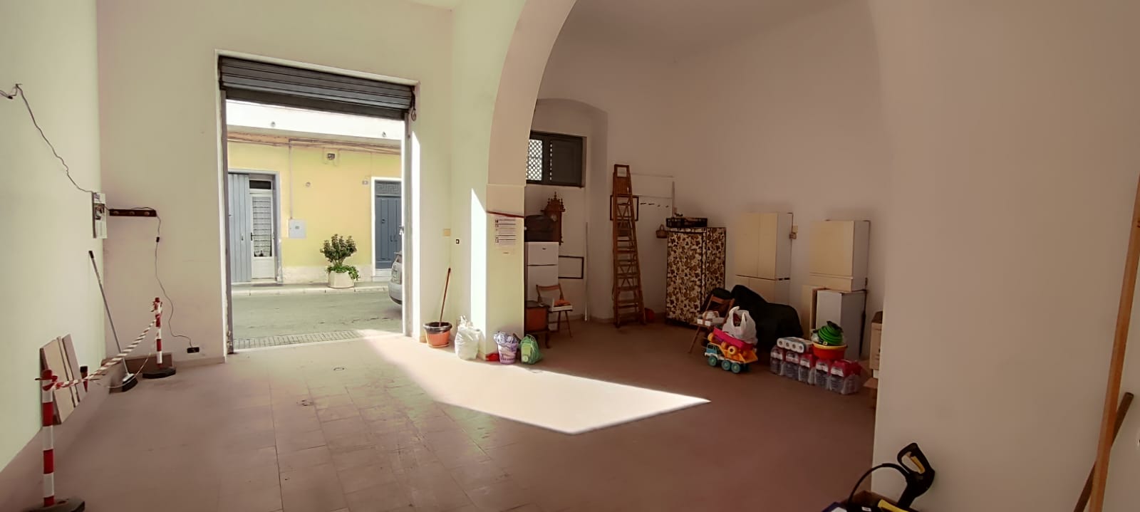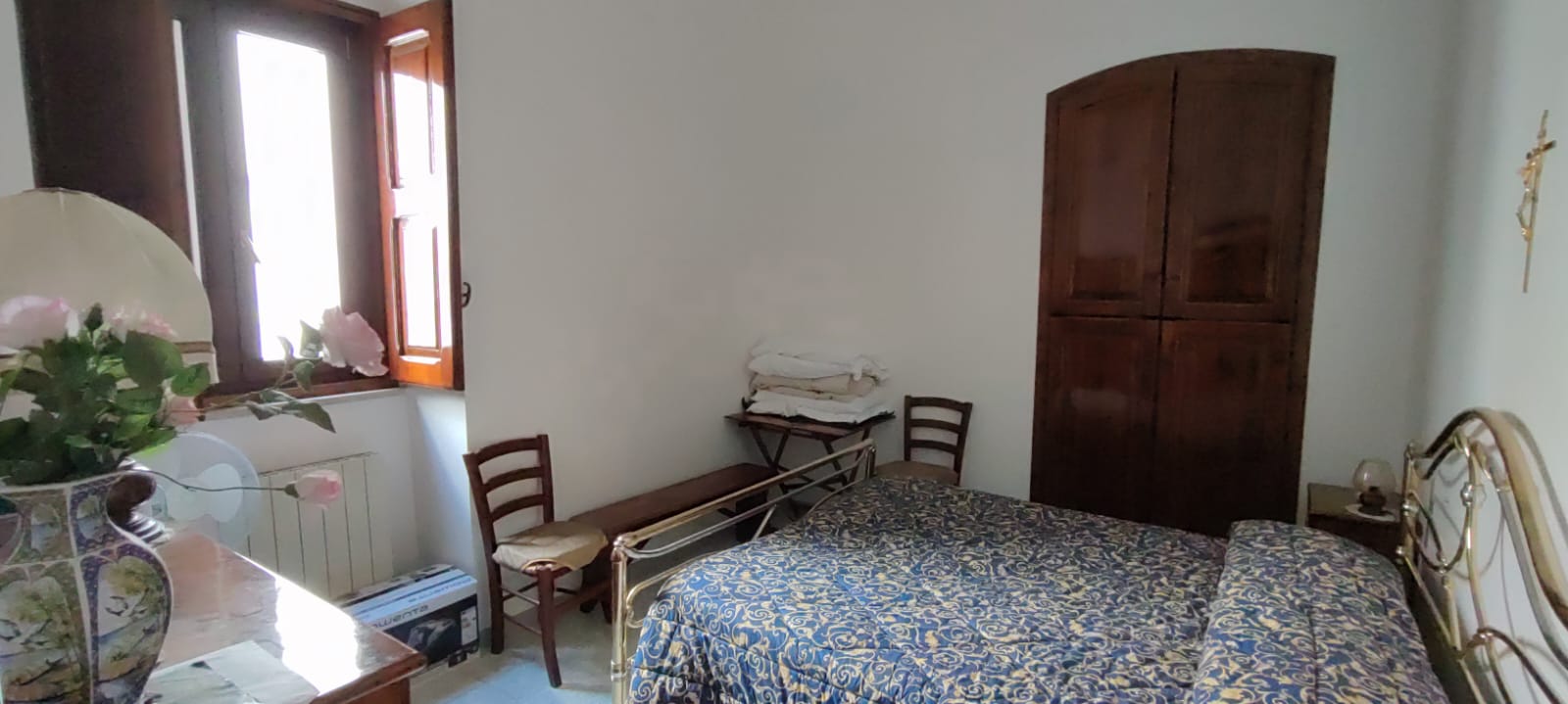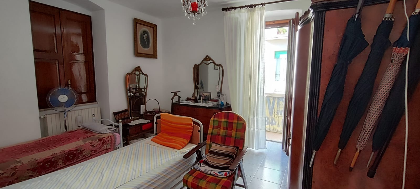 Unità immobiliare ubicata in pieno centro e precisamente a pochi passi dalla Piazza XX Settembre, ad angolo tra la Via Bruni e la Via Leonida. Si accede all’immobile da un portone indipendente, e si sviluppa in n° 2 appartamenti comunicanti tra loro e così suddivisi: dal lato sinistro troviamo un ampio salone con camino, la cucina abitabile, una camera da letto ampia ed un bagno; dal lato destro troviamo un ampio salone con camino, n° 2 camere da letto, cucina e bagno; il tutto per una superficie totale di mq. 150 circa. Da entrambi gli appartamenti si accede al grande terrazzo di pertinenza che ricopre esattamente l’intera proprietà. L’unità immobiliare si completa con un ampio locale al piano terra di circa 60 mq. con bagno e atrio di pertinenza di mq. 30 circa, con possibilità di essere collegato internamente all’unità immobiliare citata. La proprietà dispone di unico impianto di riscaldamento con termosifoni in ghisa, unico impianto elettrico ed unico contatore dell’acqua. Per quanto riguarda gli infissi sono predisposti con delle persiane in PVC, finestre e porte in legno massello a taglio termico di ultima generazione con vetrocamera doppia e scuri in legno massello; le porte interne si presentano anch’esse in legno massello, la pavimentazione è in ceramica. Il locale invece dispone di classiche serrande in ferro con apertura elettrica.