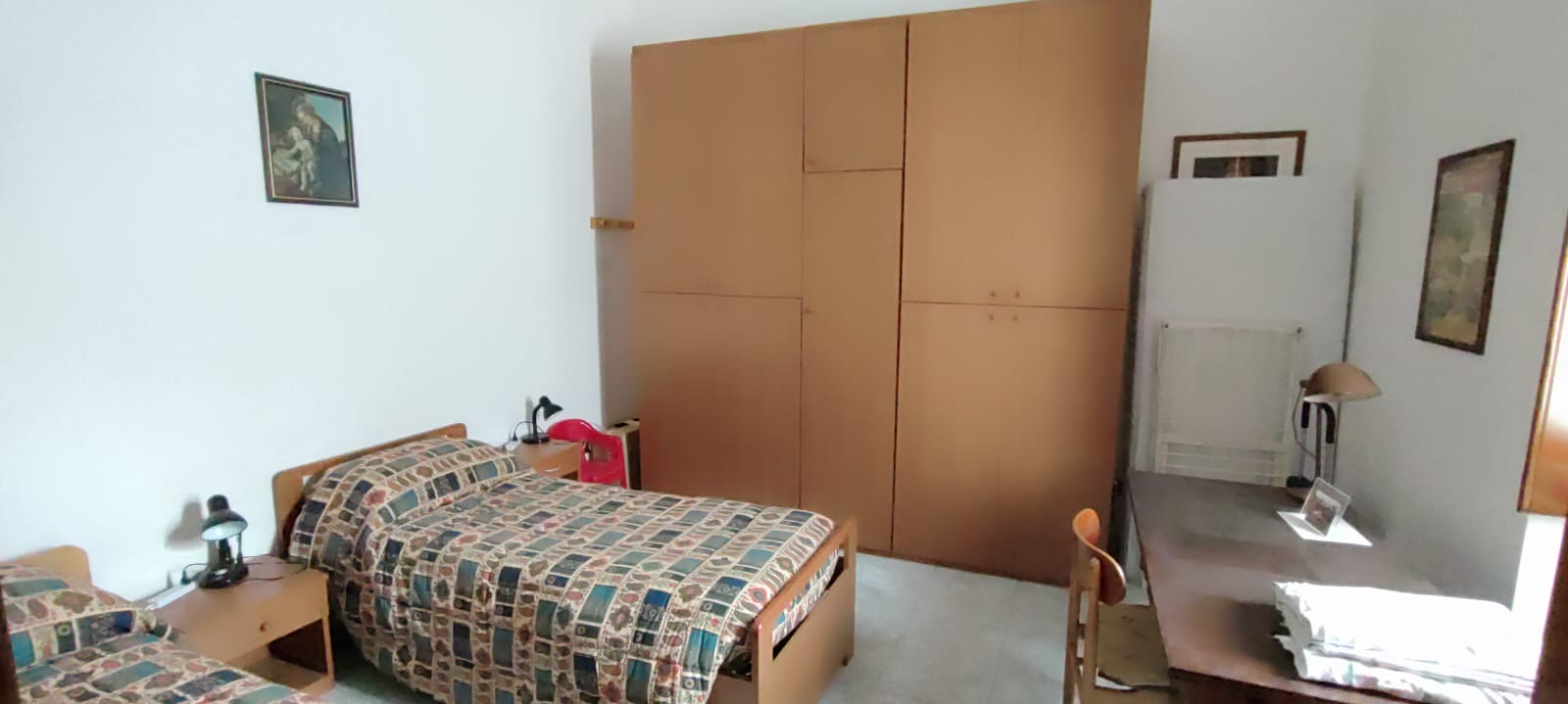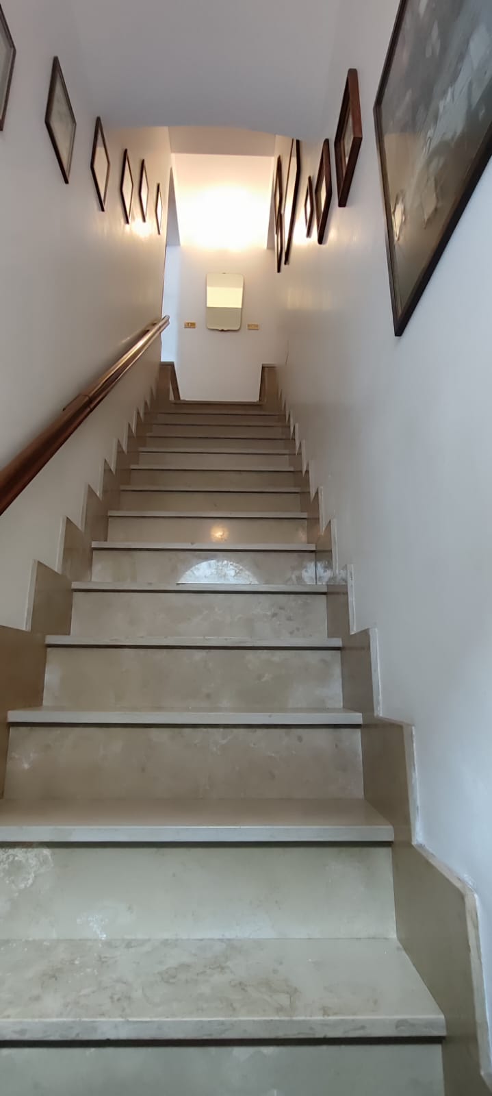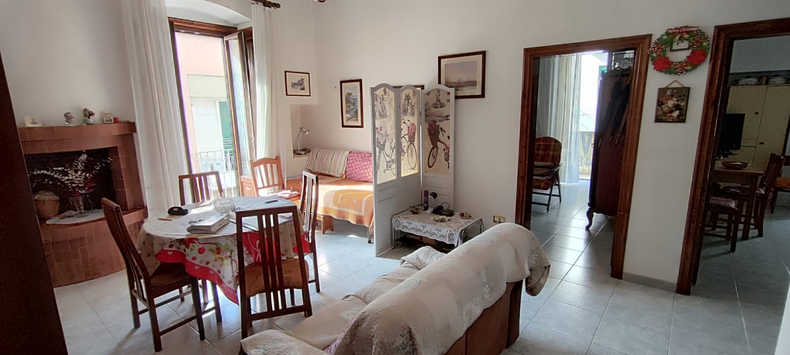 Unità immobiliare ubicata in pieno centro e precisamente a pochi passi dalla Piazza XX Settembre, ad angolo tra la Via Bruni e la Via Leonida. Si accede all’immobile da un portone indipendente, e si sviluppa in n° 2 appartamenti comunicanti tra loro e così suddivisi: dal lato sinistro troviamo un ampio salone con camino, la cucina abitabile, una camera da letto ampia ed un bagno; dal lato destro troviamo un ampio salone con camino, n° 2 camere da letto, cucina e bagno; il tutto per una superficie totale di mq. 150 circa. Da entrambi gli appartamenti si accede al grande terrazzo di pertinenza che ricopre esattamente l’intera proprietà. L’unità immobiliare si completa con un ampio locale al piano terra di circa 60 mq. con bagno e atrio di pertinenza di mq. 30 circa, con possibilità di essere collegato internamente all’unità immobiliare citata. La proprietà dispone di unico impianto di riscaldamento con termosifoni in ghisa, unico impianto elettrico ed unico contatore dell’acqua. Per quanto riguarda gli infissi sono predisposti con delle persiane in PVC, finestre e porte in legno massello a taglio termico di ultima generazione con vetrocamera doppia e scuri in legno massello; le porte interne si presentano anch’esse in legno massello, la pavimentazione è in ceramica. Il locale invece dispone di classiche serrande in ferro con apertura elettrica.