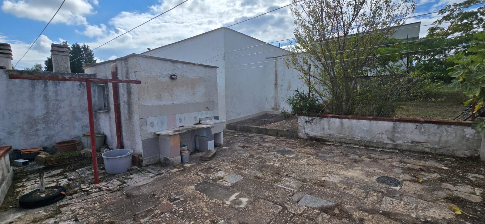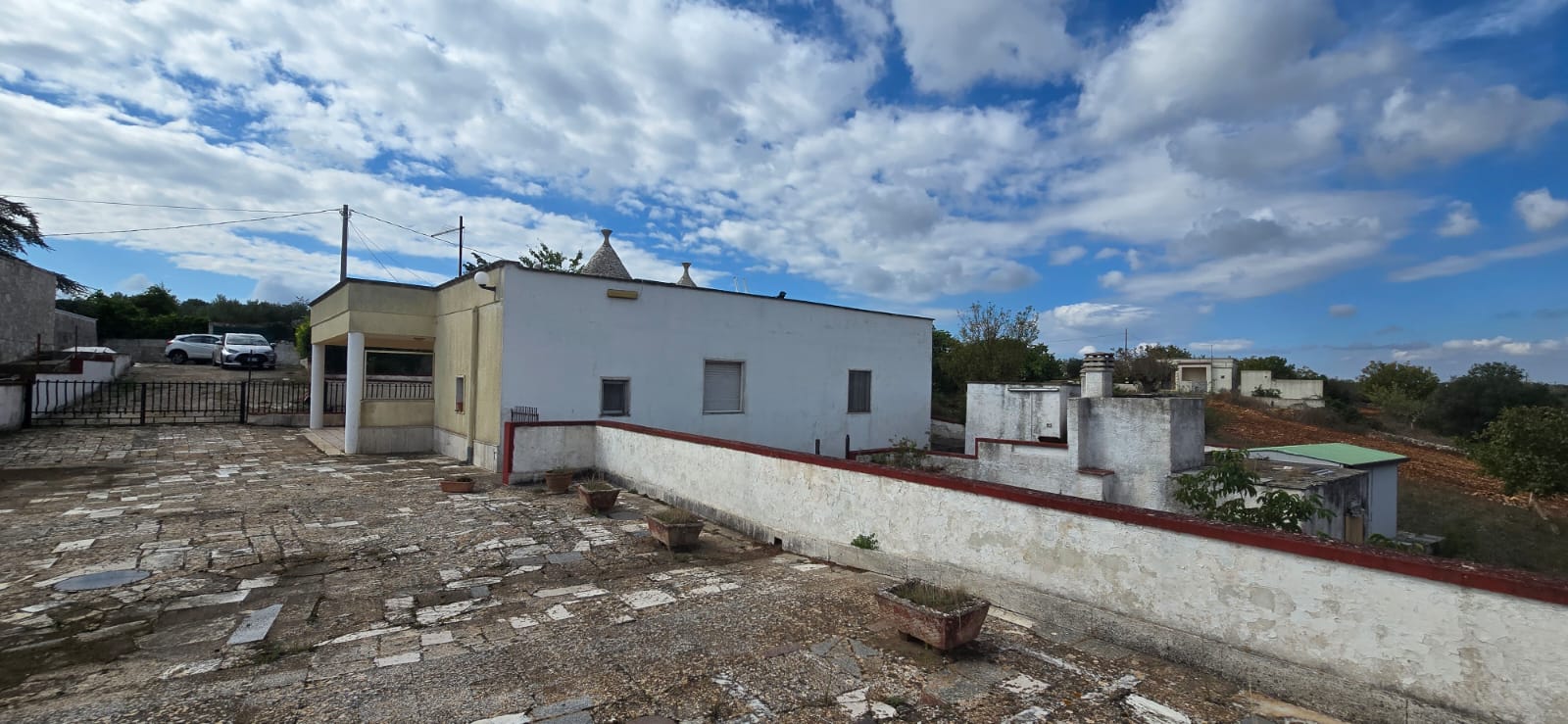Via Madonna dello Scagno, a 6 km da Martina, villino con tre trulli composto da cucina, tre camere, bagno. Terreno circostante.